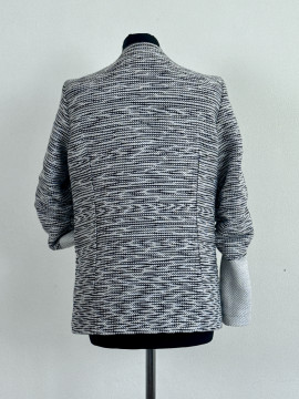 Originálne sako z kolekcie MONOCHROME, vytvorené s precíznosťou a vášňou. Elegantný strih bez goliera, nazberané rukávy. Zapínanie na 5 mini stláčacích gombíkov.Výrazná saténová podšívka.