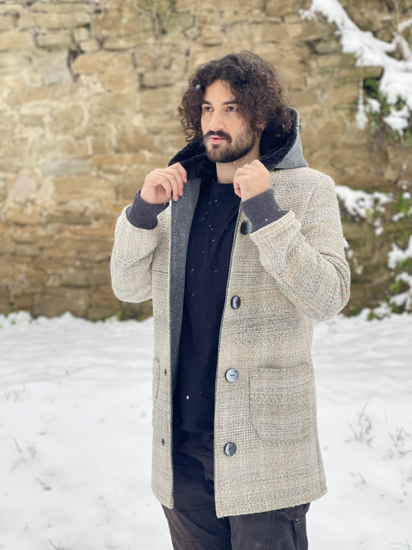 Original coat created with precision and passion. Sporty elegant cut, zipper fastening, hood, sleeves finished with knit cuffs. When ordering, the client can choose the color variant of the outer woven fabric, cut, and lining. It is also possible to change the fastening to snap buttons - see product gallery. Woven with love, interwoven with tradition.