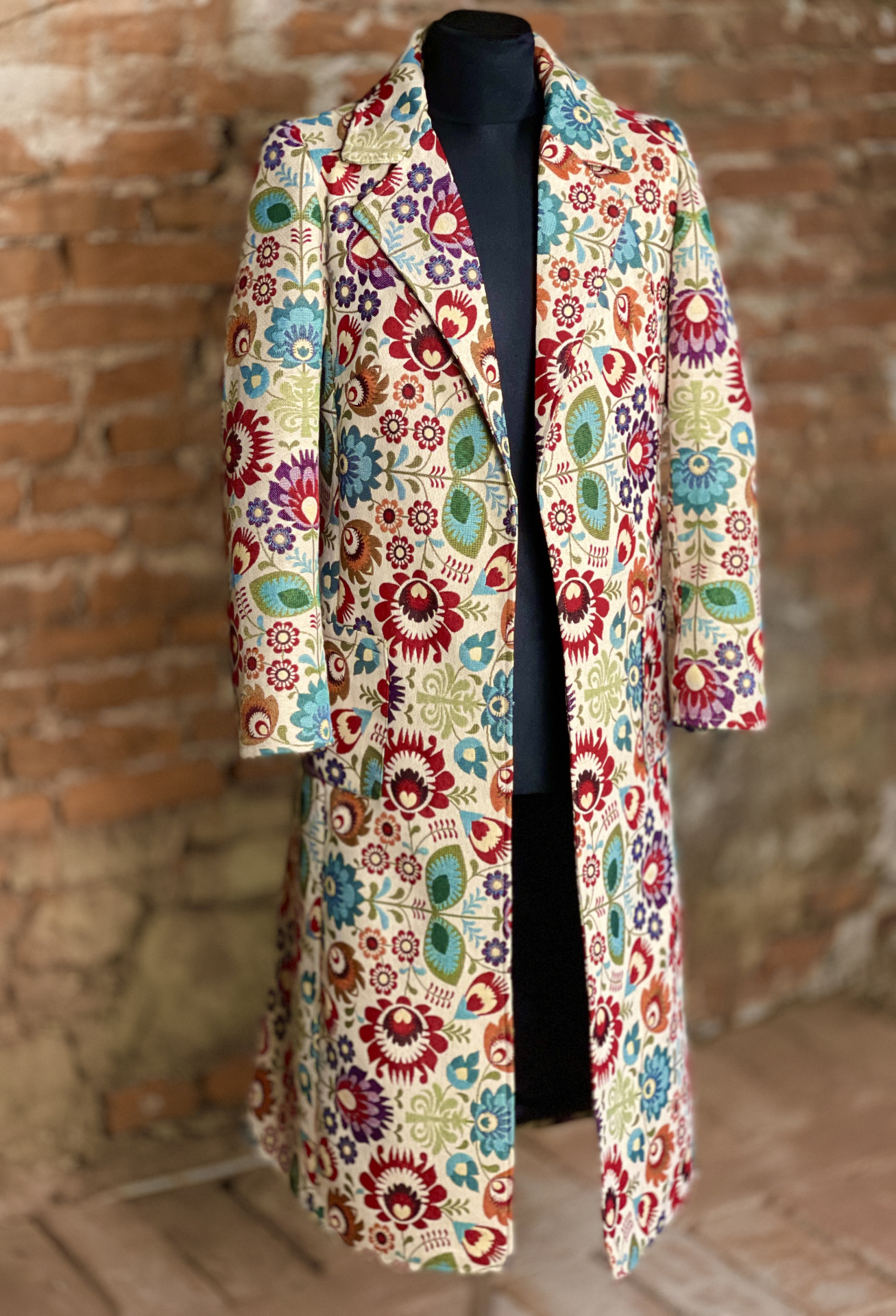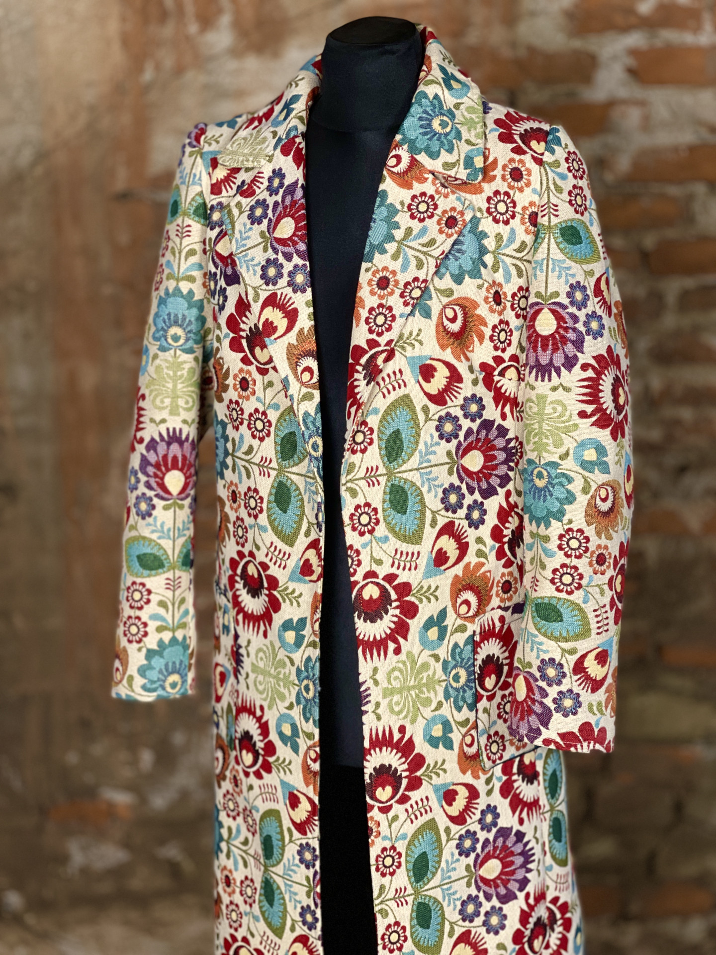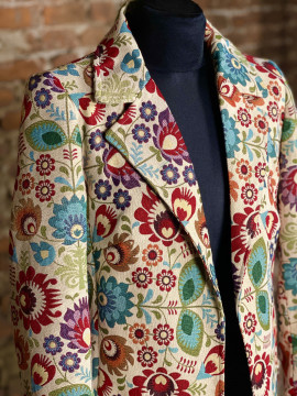 We present to you a beautiful jacquard coat that will bring colors to every day! This original piece was carefully designed and sewn so you feel special on every occasion. With its unique patterns and richness of colors, you will become the center of attention wherever you go. The combination of elegance and creativity makes this coat not only clothing but also an artistic expression of your personality. Add this exclusive piece to your wardrobe and let yourself be carried away by beauty and style that never goes out of fashion!