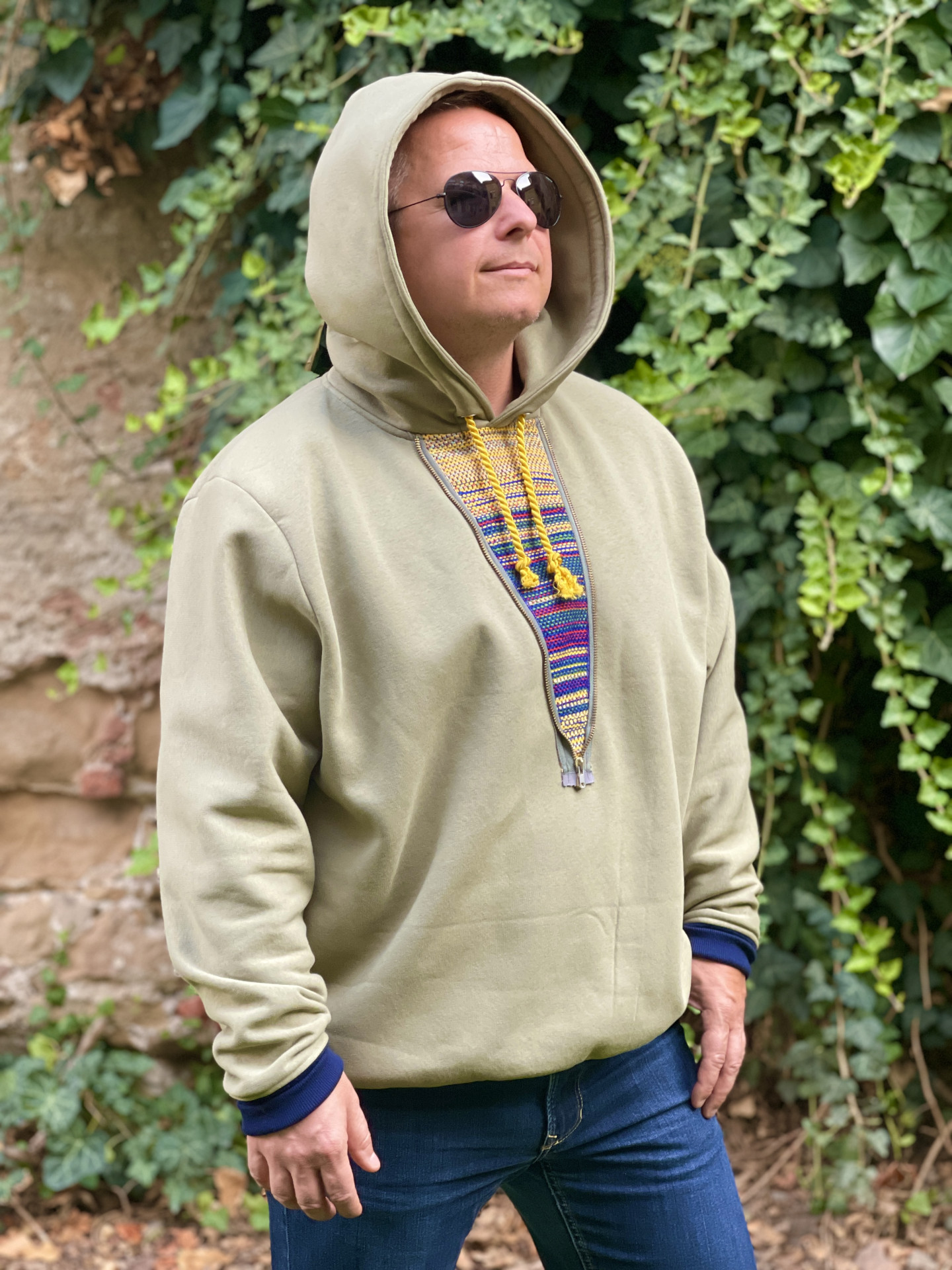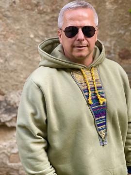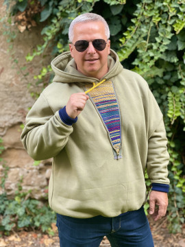 Originálna mikina navrhnutá a ušita v našom ateliéri. Zaručí vám pohodlie,teplo a pozornosť, nakoľko je kombinovaná s našim tkaným materiálom.